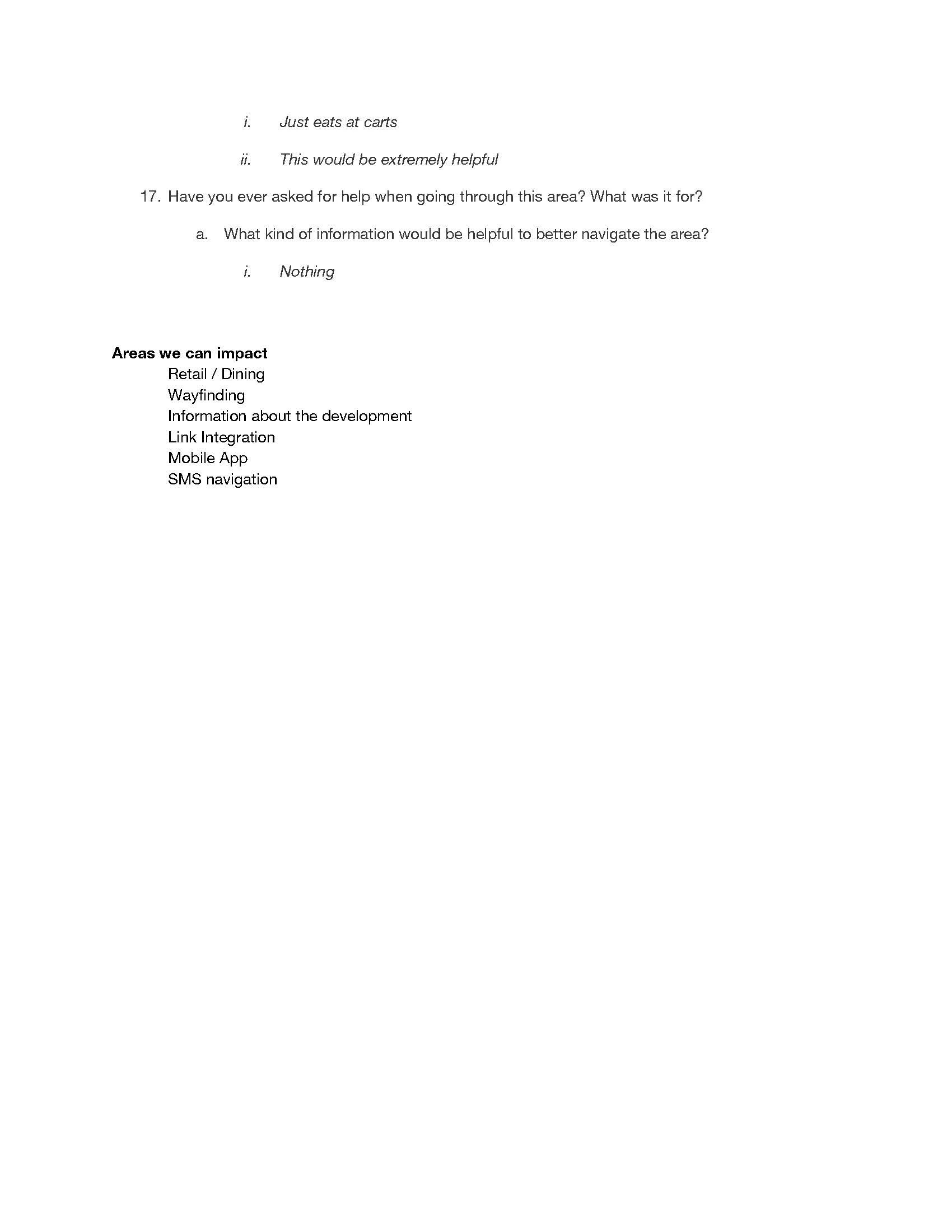 I created a UX strategy for a chatbot designed to help visitors navigate the space and find nearby amenities. We then built out the project, sharing responsibilities. Approaching the problem from a user first perspective, I crafted a survey, examined the space, pinpointed the problems and figured out a flow that would make the most amount of sense for an SMS based chatbot. I primarily dealt with the UX of the chatbot, natural language processing, machine learning and python aspects of the bot itself and help outline a strategy for the project.